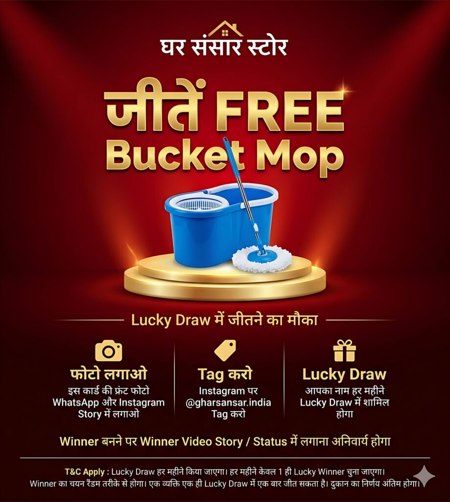 ग्राहकों के उत्साह को बढ़ाने के लिए स्टोर द्वारा एक विशेष ‘लकी ड्रॉ’ प्रतियोगिता भी चलाई जा रही है, जिसमें विजेता को मुफ्त Bucket Mop दिया जाएगा। इस प्रतियोगिता में भाग लेना बेहद आसान है: